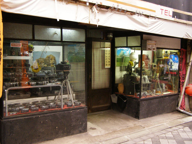商店街にある元カメラ屋 店頭に骨董カメラのコレクションを展示しています。現在は営業はしていないようです。